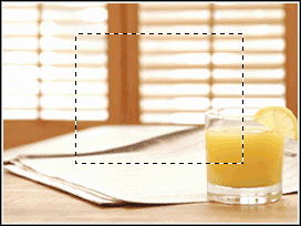 Зададим требуемые опции и сделаем прямоугольное выделение. Для этого переведем указатель мыши на изображение и, щелкнув в начальной точке и не отпуская кнопки мыши, начнем перемещать указатель. Появилось пунктирное выделение, изменяющее свои размеры вслед за перемещением указателя.