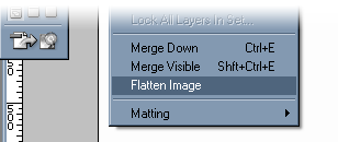 Для того чтобы объединить слои, как показано на рисунке, выберете в главном меню Layer> Merge Down, либо нажмите Ctrl+E. Эта команда объединяет слои лежащие друг под другом.